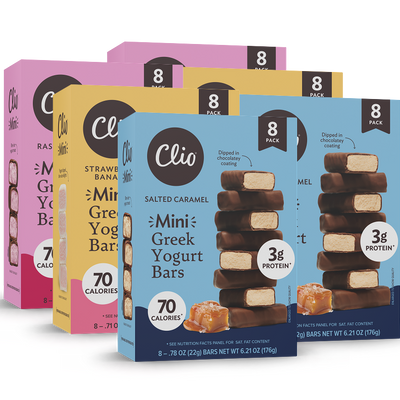 2 Raspberry Minis, 2 Yogurt Dipped Strawberry Banana Minis, 2 Salted Caramel Minis